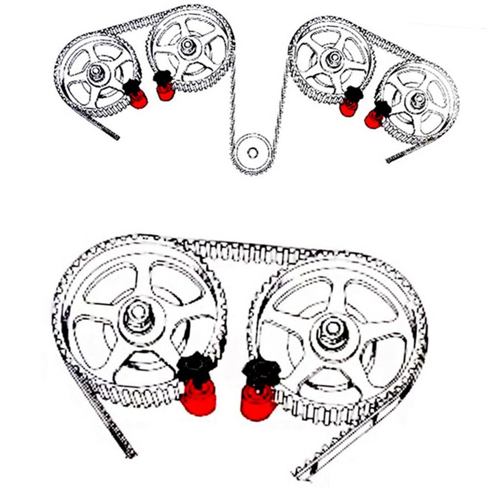Covers most single overhead cam engines, twin cam engines and quad cam engines lock camshafts to hold valve timing during belt replacement.