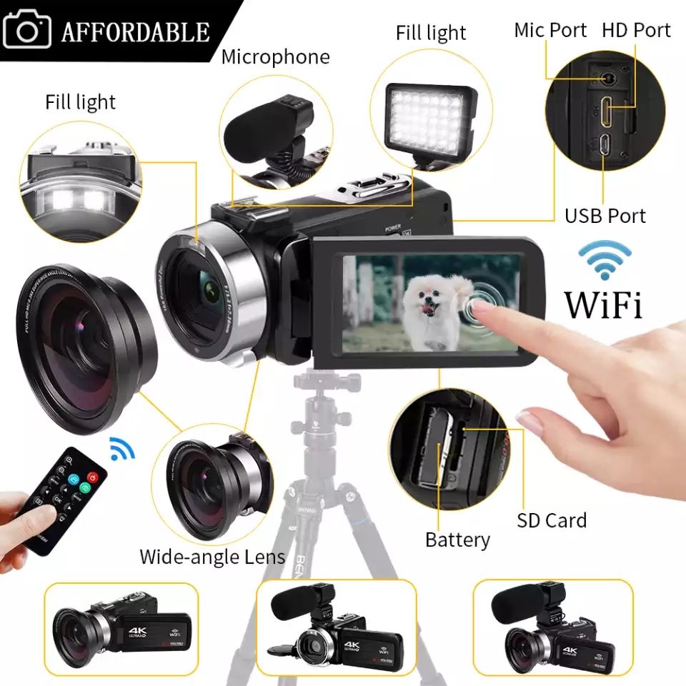 1*Digital CameraSome AccessoriesPackage List: 1 * Digital Video Camera 1 * Camera Battery 1 * Lens Cap 1 * USB Cable 1 * Camera Bag 1 * Remote Control 1 * HD Cable 1 * Camera User Manual 1 * Microphone 1 * Wide-angle Lens 1 * Fill Light