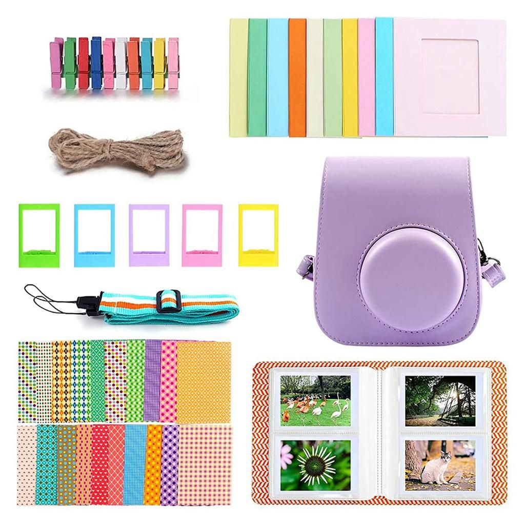 7 in 1 Camera Accessories Set: Film Pack Perfectly Fits for Fujifilm Instax Mini 11 Instant Polaroid Film Cameras.Package include: 1Piece mini 11 camera case with adjustable strap,photo album,Photo Frame, Rectangle Hanging Photo Frame,border sticker.Functions: Can meet your different needs and create your own customized memory. Frames, photo albums and film sticker borders allow your film to have your own creativity. The attached pocket is convenient for you to store photos and other accessories. Besides, there's no need to take camera out when you take a picture. Adjustable shoulder strap can help you go a long way.Album : The album contains 16 separate pages, with 2 pockets on each side (4 photos per page), keep your photos organized and durable, and it is easy to view when opened like a book.Great Gifts:it is an awesome gift for teen girls, kids, friends, family on birthday, wedding and any holidays, like Christmas, Thanksgiving.