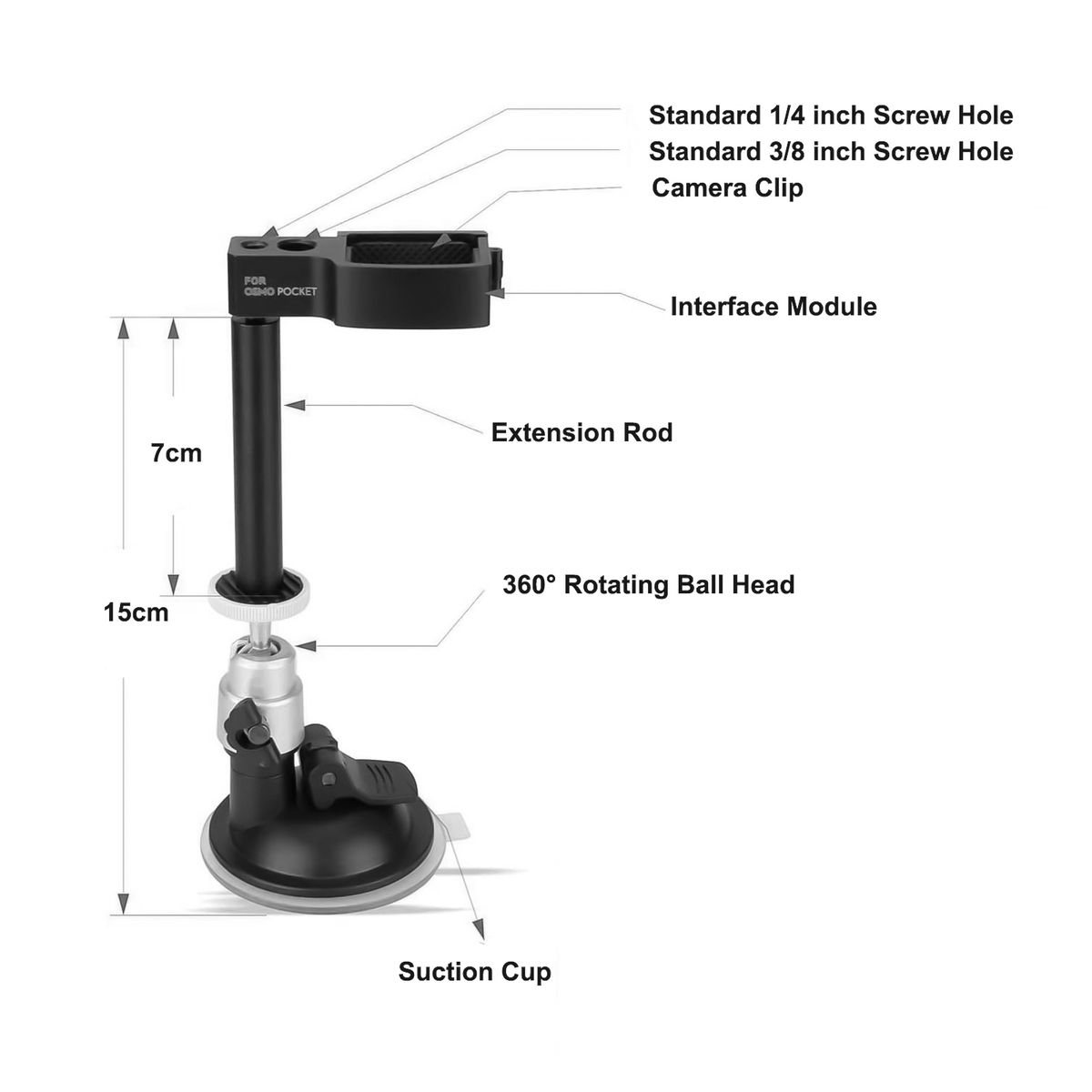 Car windshield mount bracket designed for OSMO Pocket/ Pocket 2 camera.