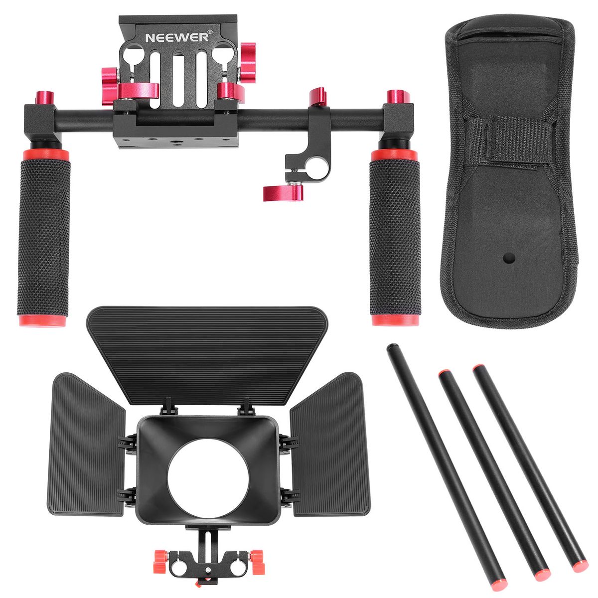【Package Contents】 Neewer Shoulder Pad, 15mm Rod Rail System with Dual Hand Grips, Matte Box