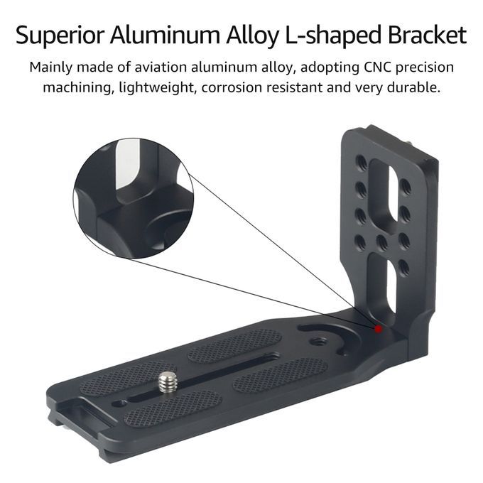 The L-shaped quick release plate is designed for both vertical/ portrait photography and quick shooting with high precision and quality requirements. Two-way use, convenient for camera vertical / horizontal shooting switching.