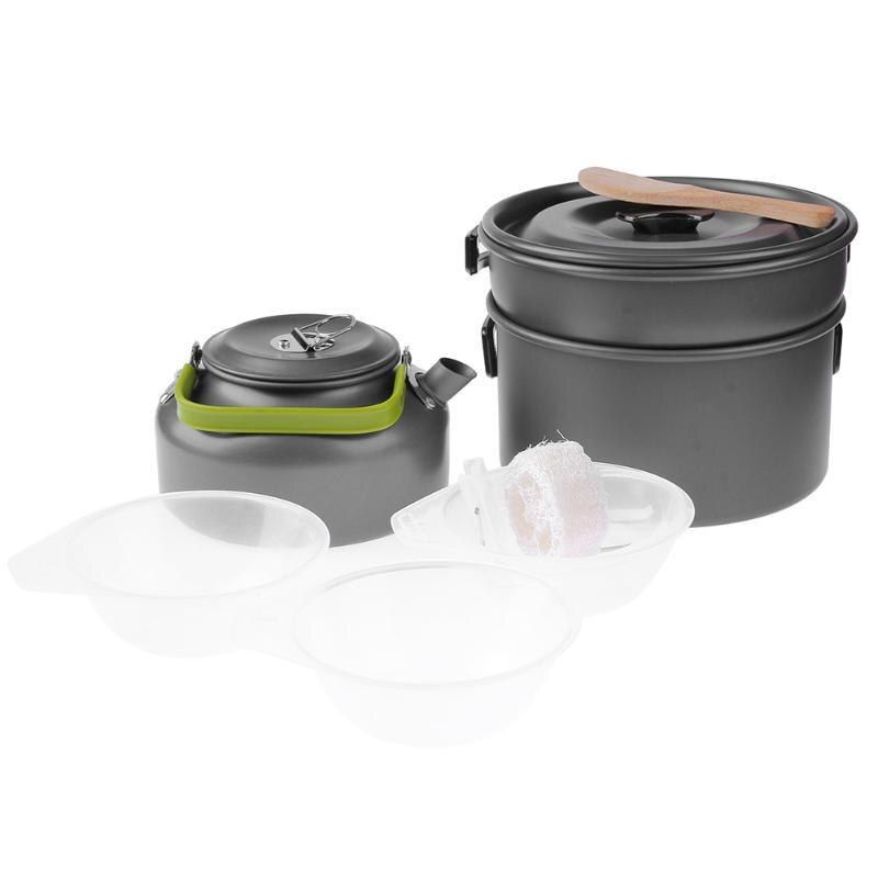 Camping Pot Ultralight Stainle Steel Cooking Pot Outdoor Camping Tableware Plastic Bowl With Wooden Shovel Outdoor Cooking