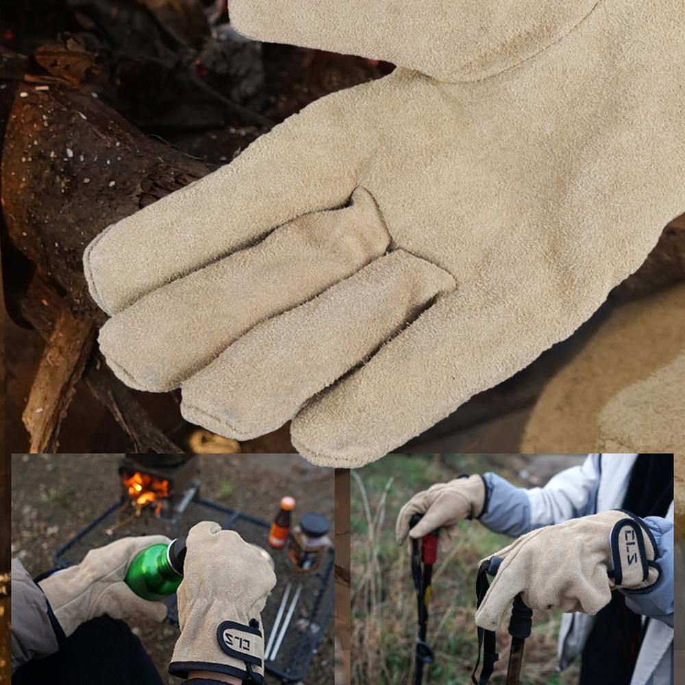 Buy Camping Gloves Cowhide Leather Gloves Heat/Fire Resistant Mittens Outdoor Warm Gloves for BBQ Oven Fireplace in Nigeria