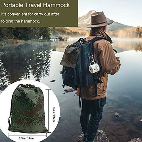 - Light Weight & PortableThis Outdoors Hammok weighs only 2 lbs, you an take it anywhere. It an be in storage in the small bag (5x5x9 inh) for maximum portability. When you take the hammok out, bag also an be used to store small items. Ideal for solo adventures, amping, hiking, bakpaking, travel, emergeny.