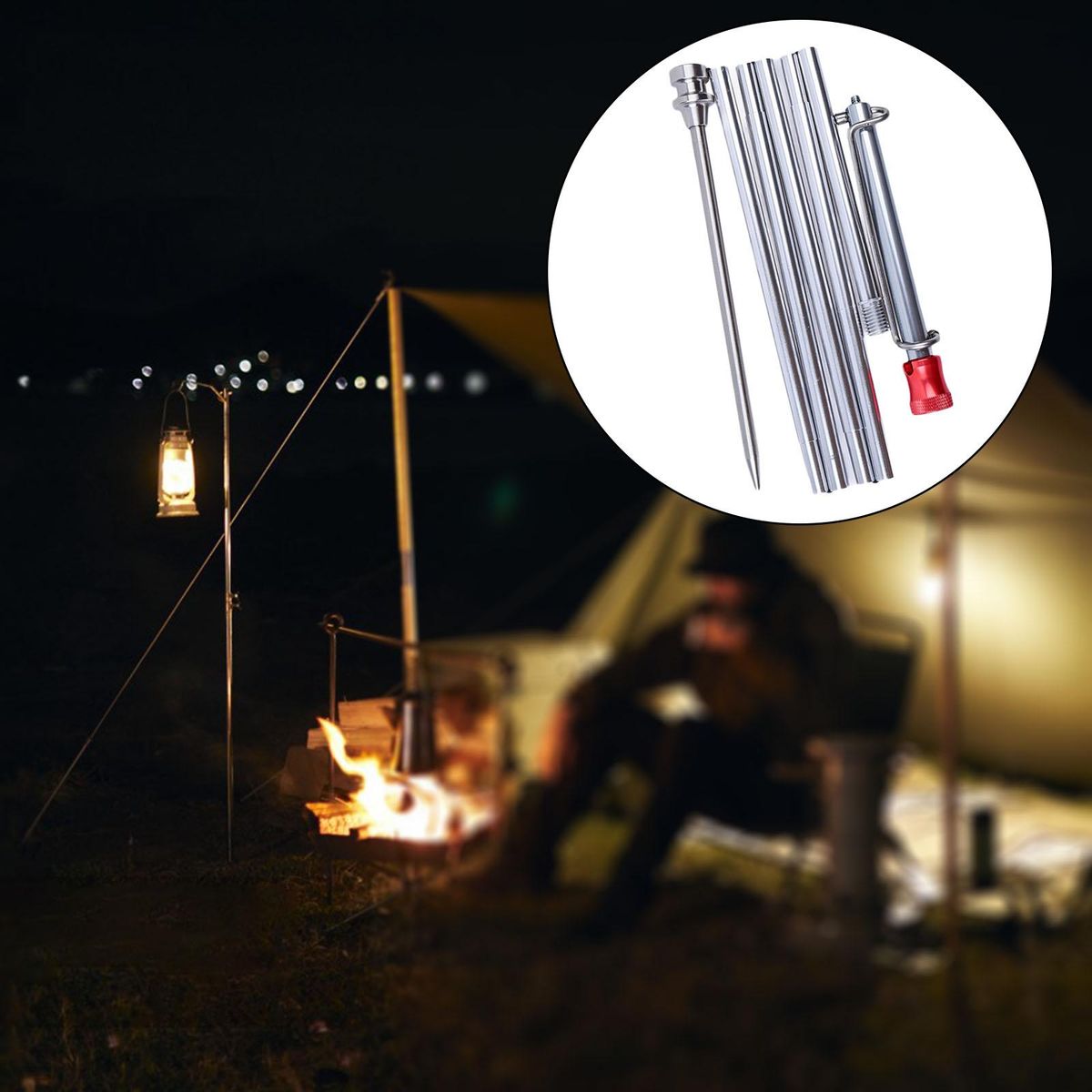 Outdoor multifunctional camping telescopic light stand. Complete Set: Package includes 7 Lamp Poles and Hook Rack and a flexible Securing clip stand.
