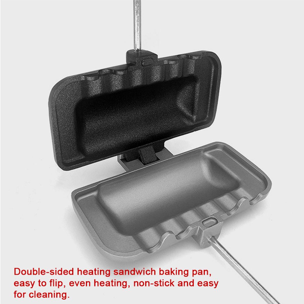 Double-sided heating sandwich baking pan, easy to flip, even heating, non-stick and easy for cleaning.