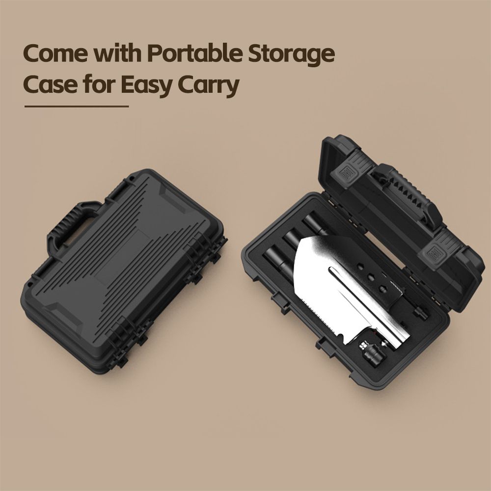 Our multi-purpose shovel is designed to handle any situation, from digging to self-defense. This camping shovel can be folded and expanded by twisting a lock for secure storage and carrying.