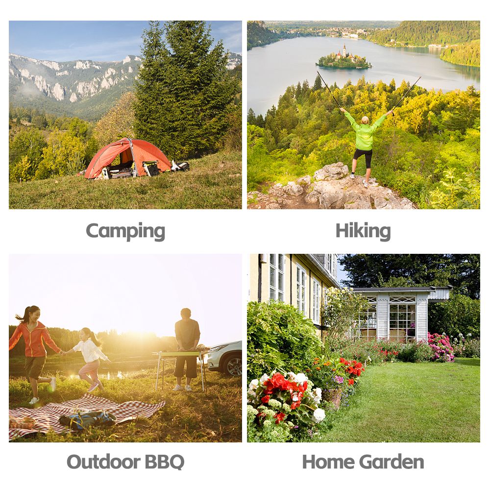 This camping gear is great for camping, fishing, backpacking, hiking, gardening, digging, shoveling snow, chopping, sawing, and cutting.