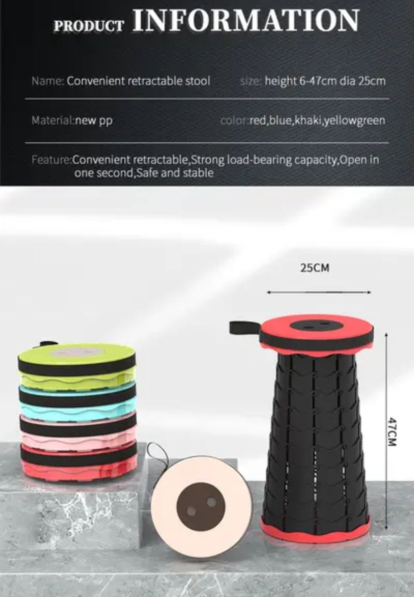 Product DescriptionPortable Telescoping Lightweight Retractable Stool Load 330 lb outdoor Folding stool for Fishing Hiking Tours BBQ outdoor Parties