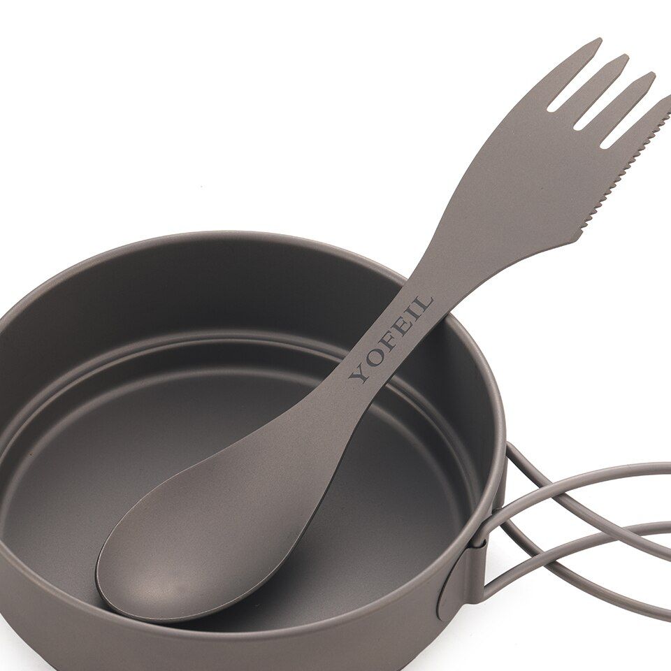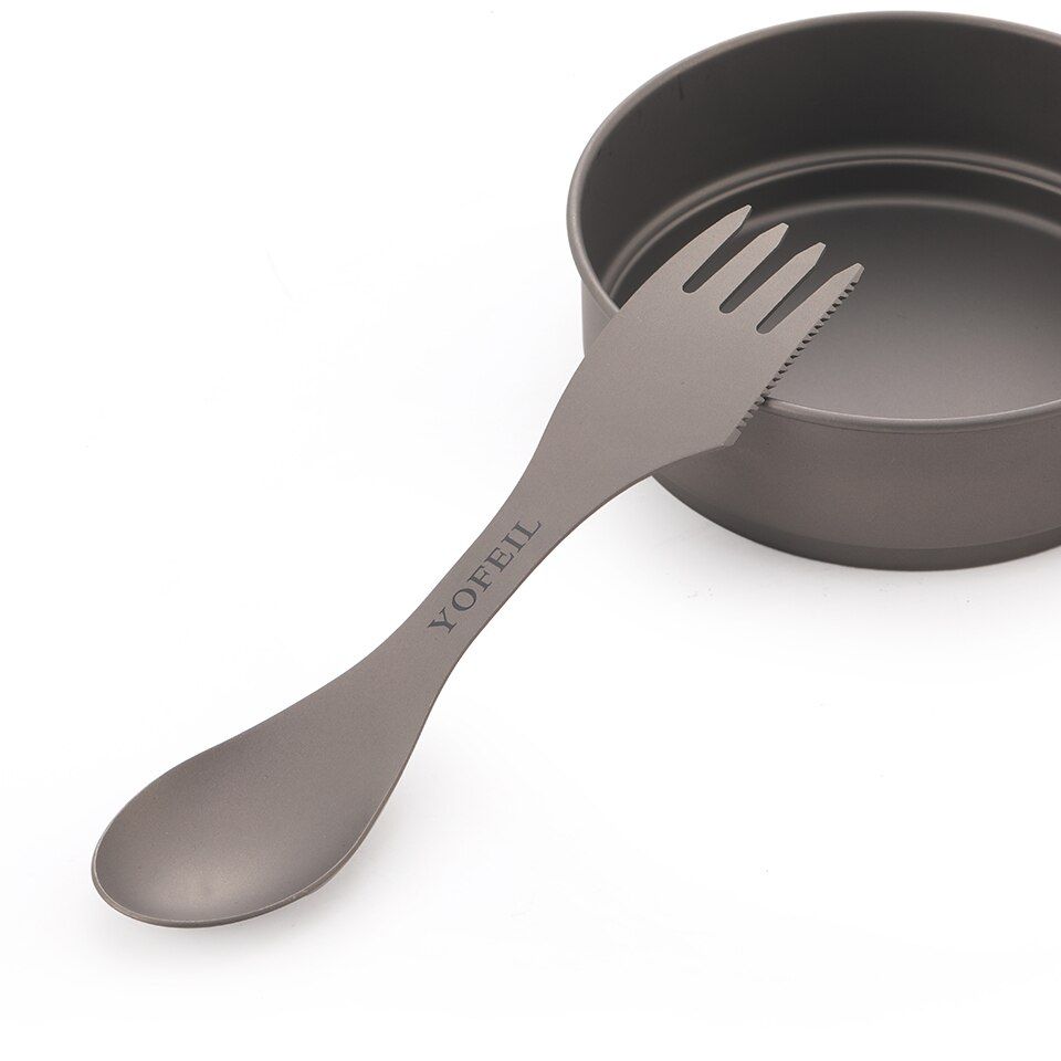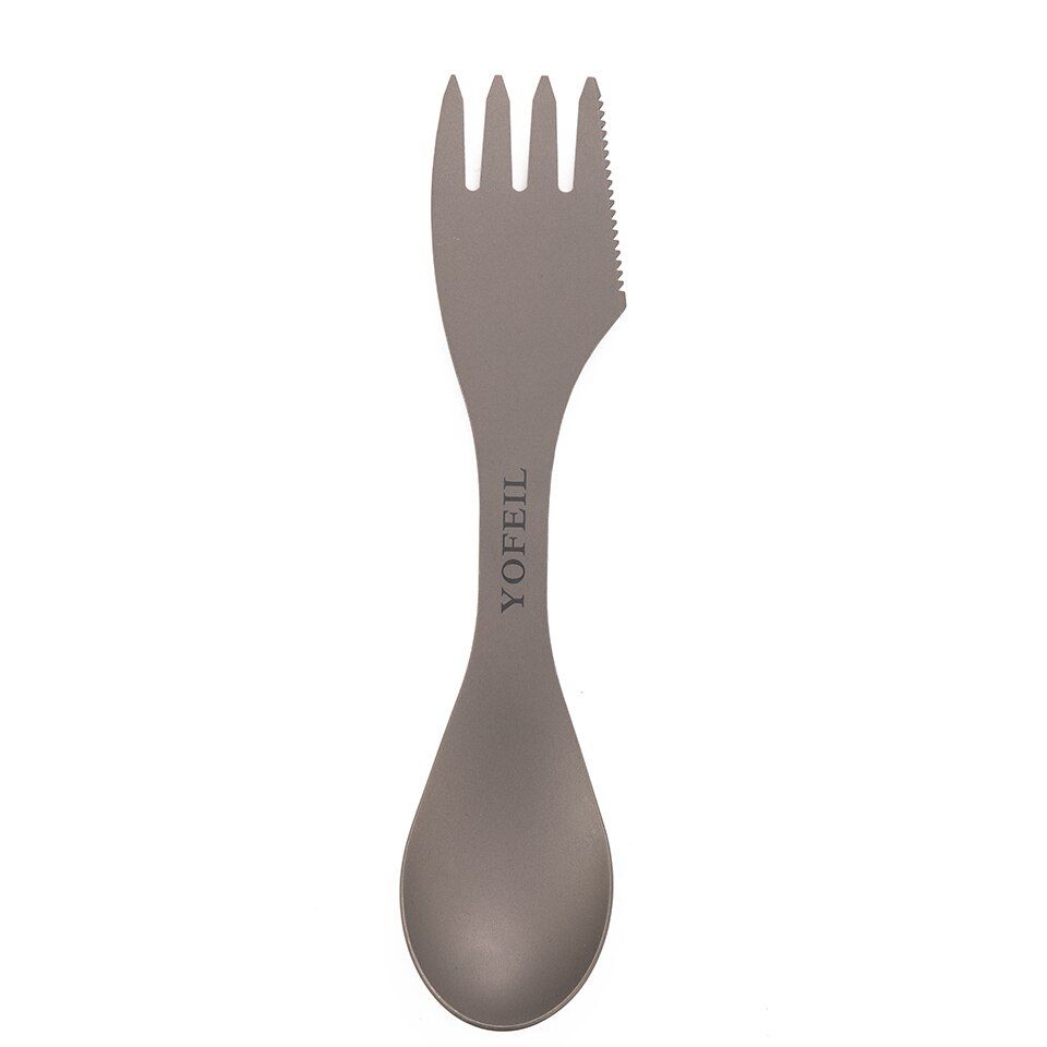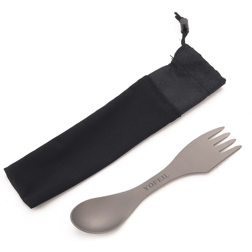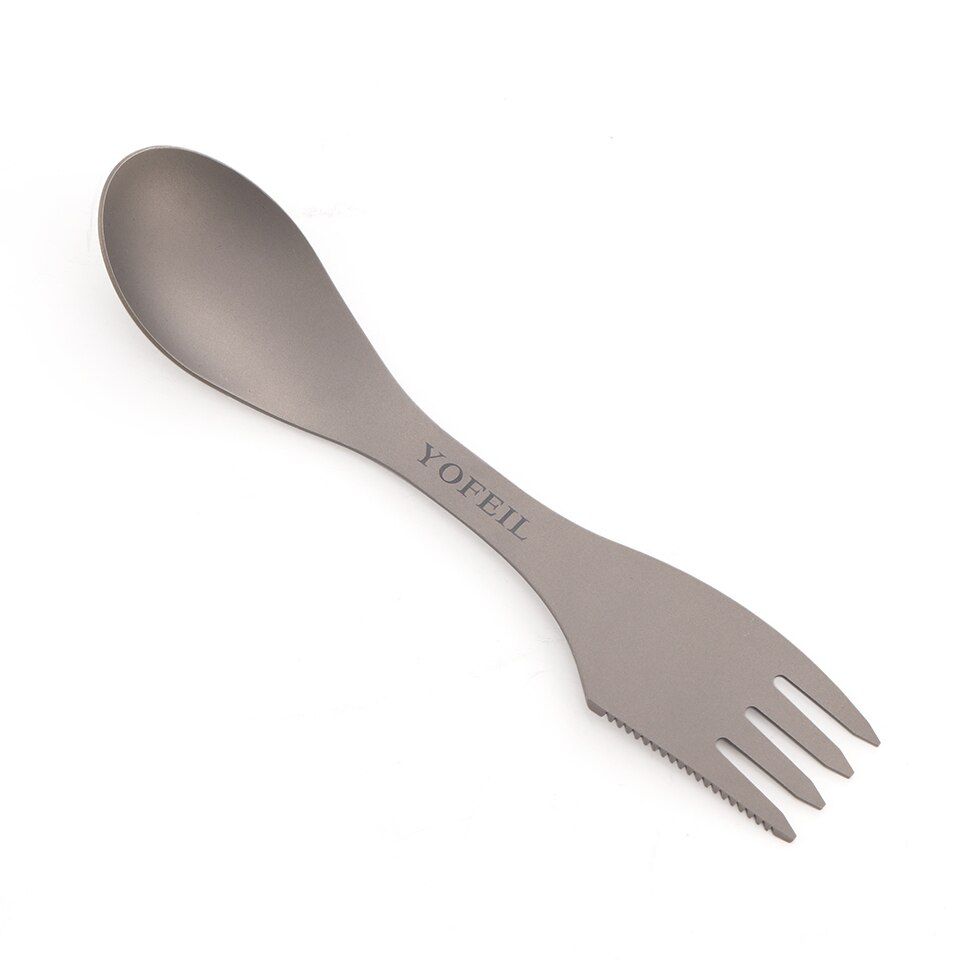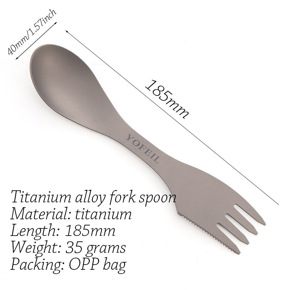 Camping Titanium Spoon Fork Three in one Ultralight Titanium Tableware Camping Outdoor Spork Outdoor Hiking AcceoriesMaterial: TitaniumLength: 182 mmWidth: 40 mmWeight: 35 gFeatures: ultra light