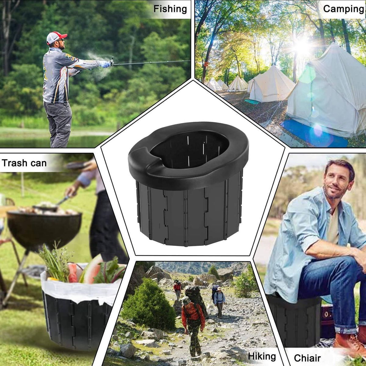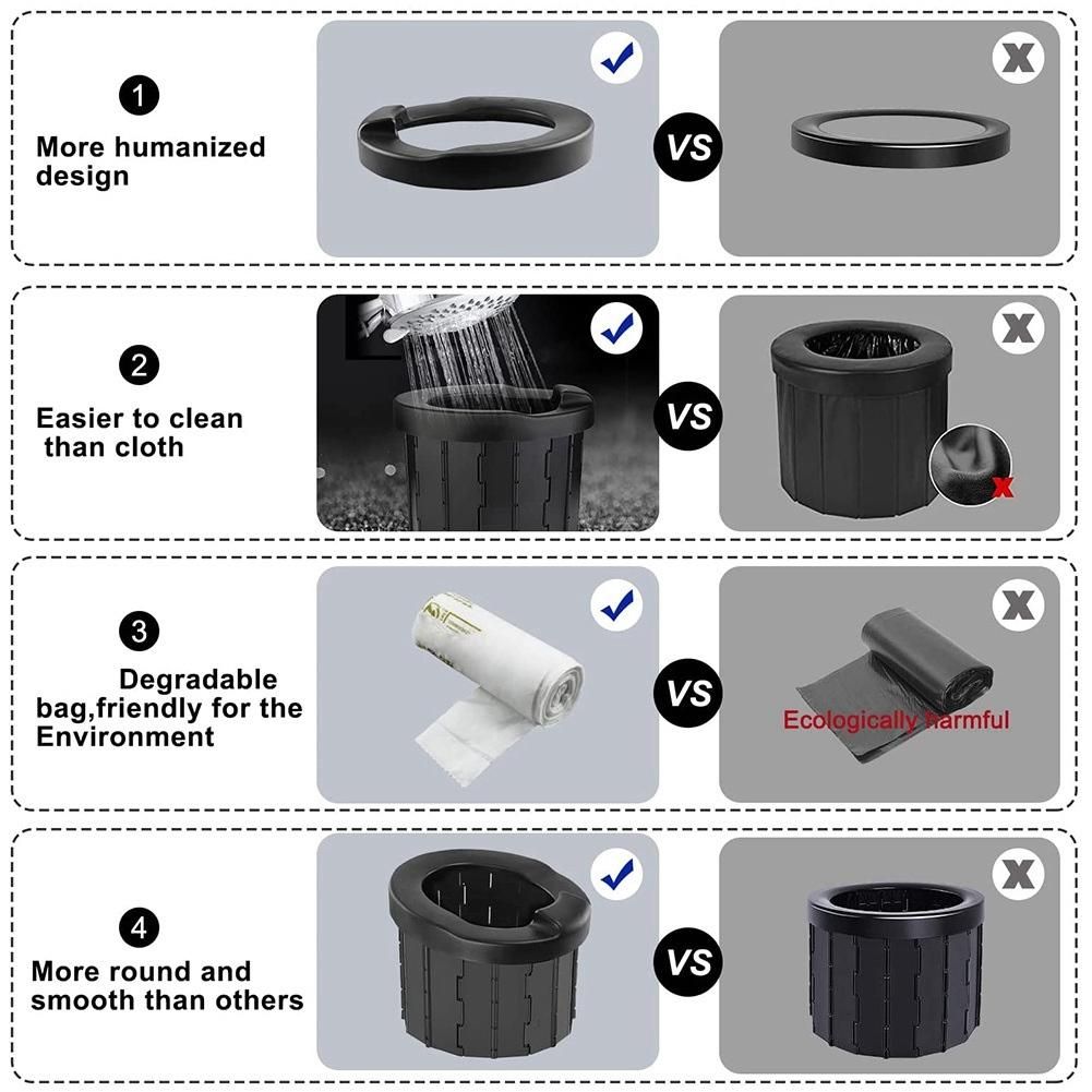 Multifunctional use: Enjoy travelling anywhere you go, portable camping toilet is designed for anyone who loves outdoor camping with families and friends. The foldable travel toilet can not only be used as a toilet in the car or when camping, but also as a seat with storage function, trash can, small stool, storage box, inner toilet for the elderly, vomit bucket for pregnant women, etc