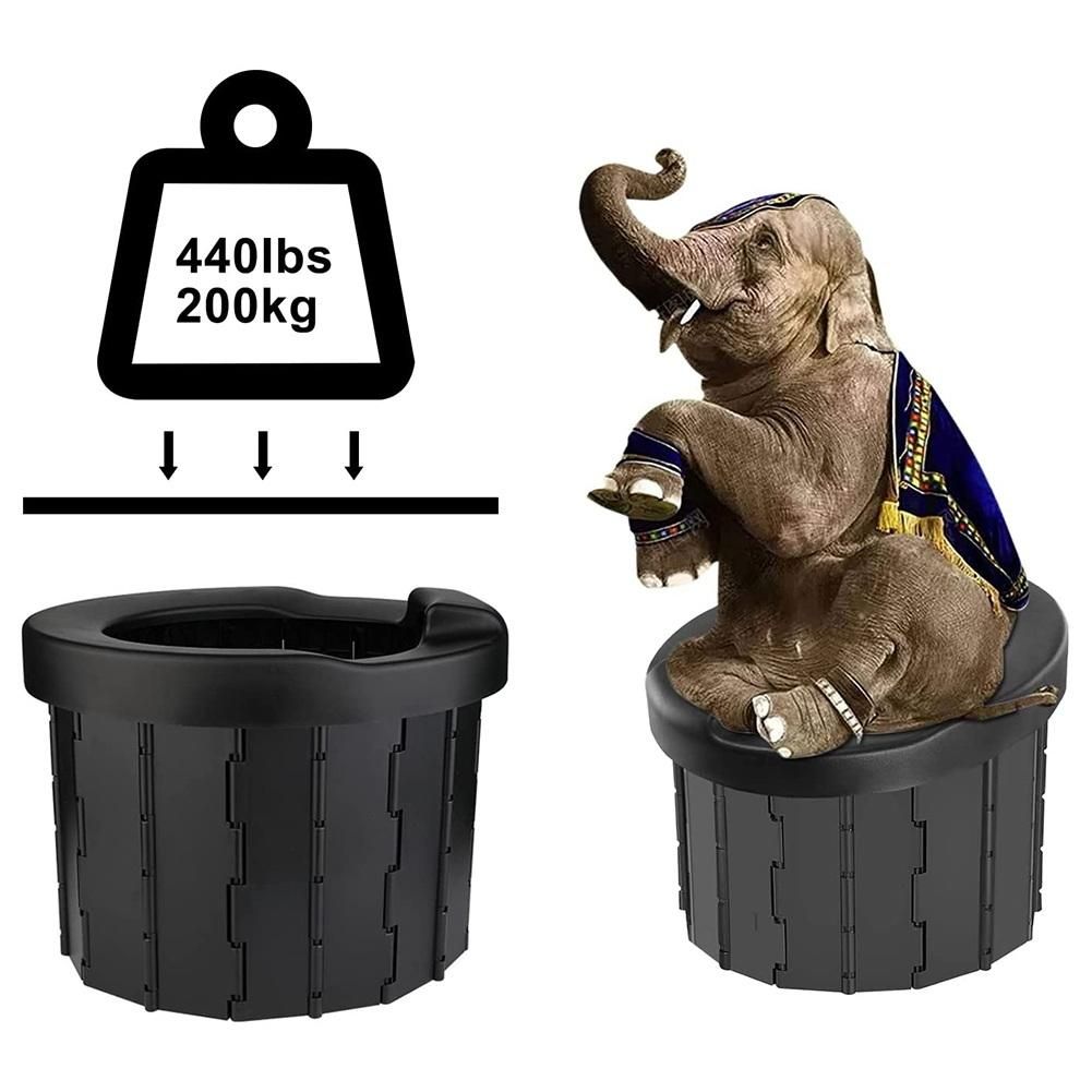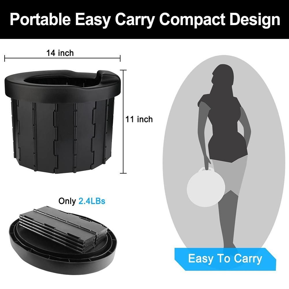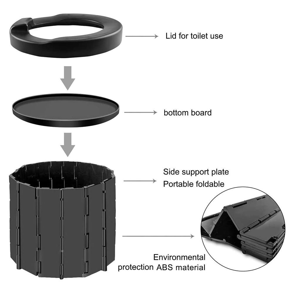 Detailed Information About The Product:New material, strong and durable - this improved version of the foldable camping toilet is made of high-quality ABS material, which is resistant to compression and fall, and is robust and durable. The camping toilet size is 36 x 36 x 28 cm after opening, larger than others, which can easily carry a weight of 200 kg, comfortable, stable and does not wobble.