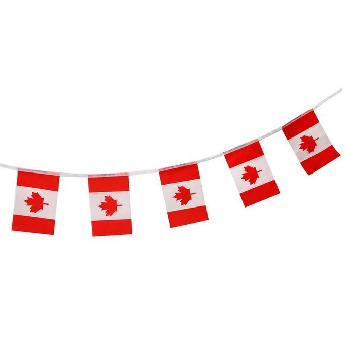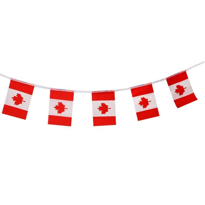 Canada String Flags are made of high quality polyester, the color is very sharp and vivid, with fade resistance, suitable for outdoor and indoor use.