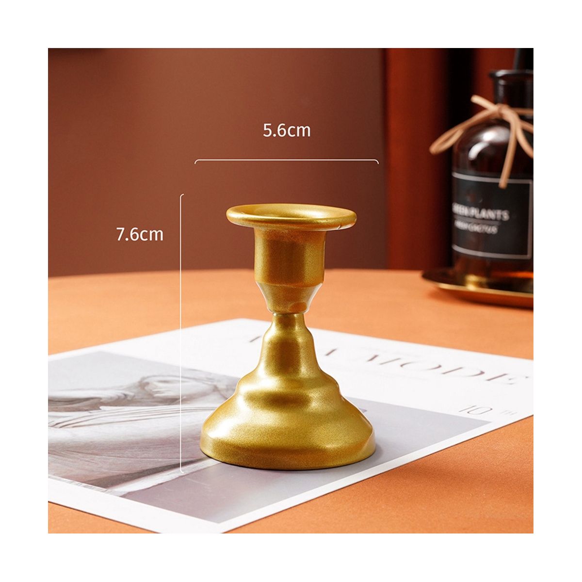 Measurements: the candle holders for pillar candles measure . 7.6 cm/ 3 inches in height, with 4.3 cm/ 1.7 inches in upper diameter and 5.6 cm/ 2.2 inches in lower diameter, proper size to decorate your dining table