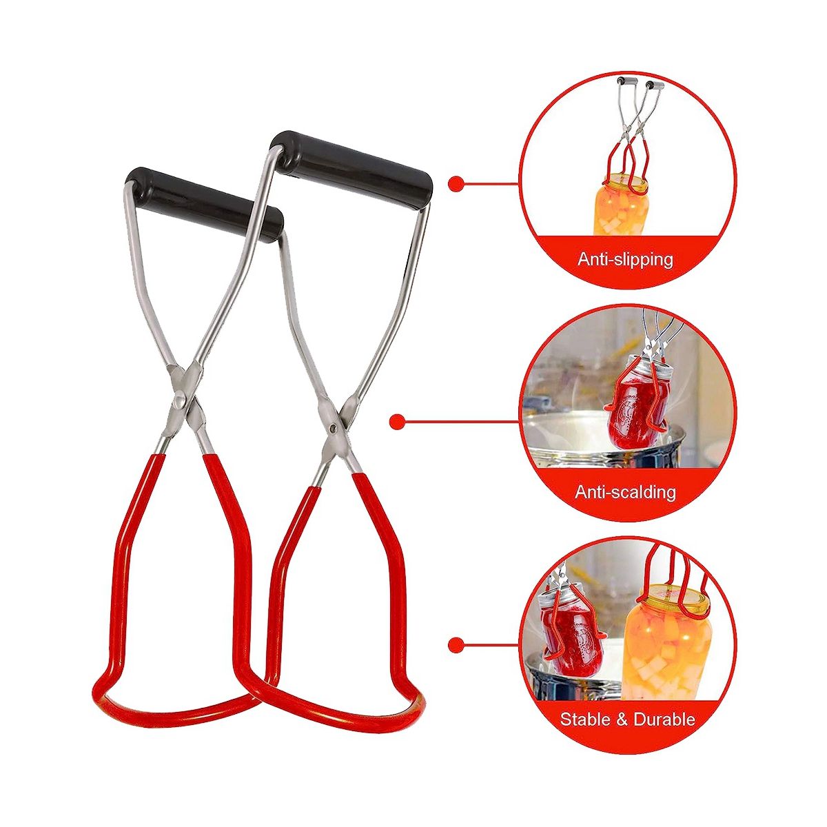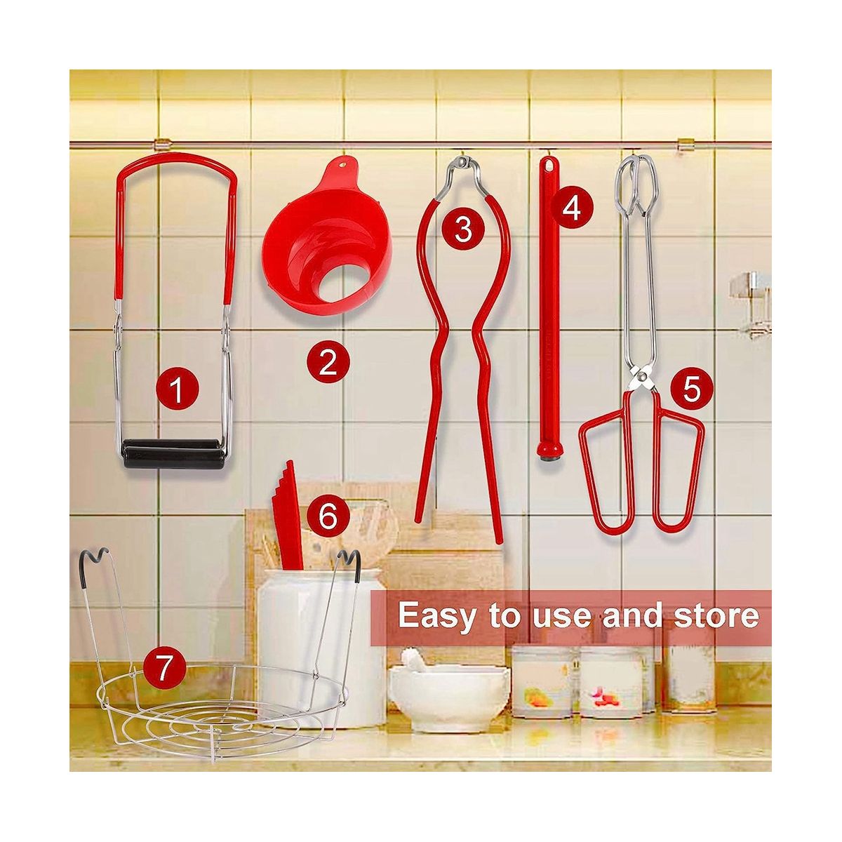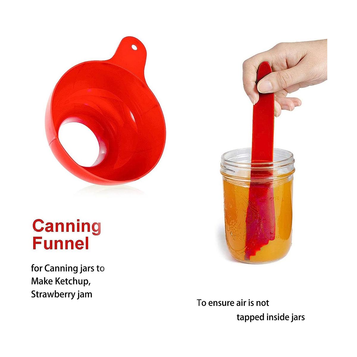 [Magnetic Lid and Wide mouth Funnel] Magnetic Lid designed to lift HOT jar lids safely preventing damage to seal strips on lid undersides during transfer out of BOILING water. Wide mouth Funnel helps transfer of jams, jellies MESS free, QUICK, and EASY.