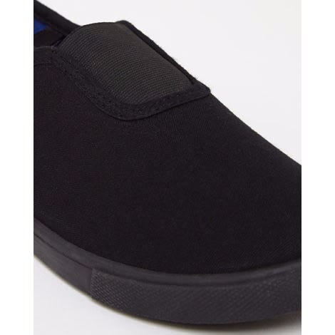 Canvas plimsoll school uniform shoe with a contrast lining. These slip-ons feature a rubber sole for comfort and durability and are also machine washable.