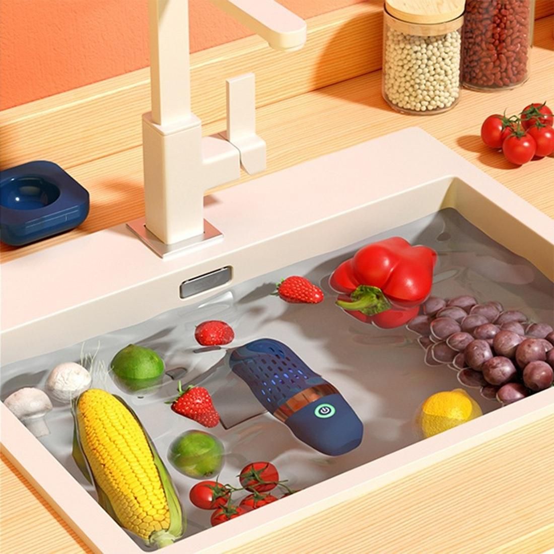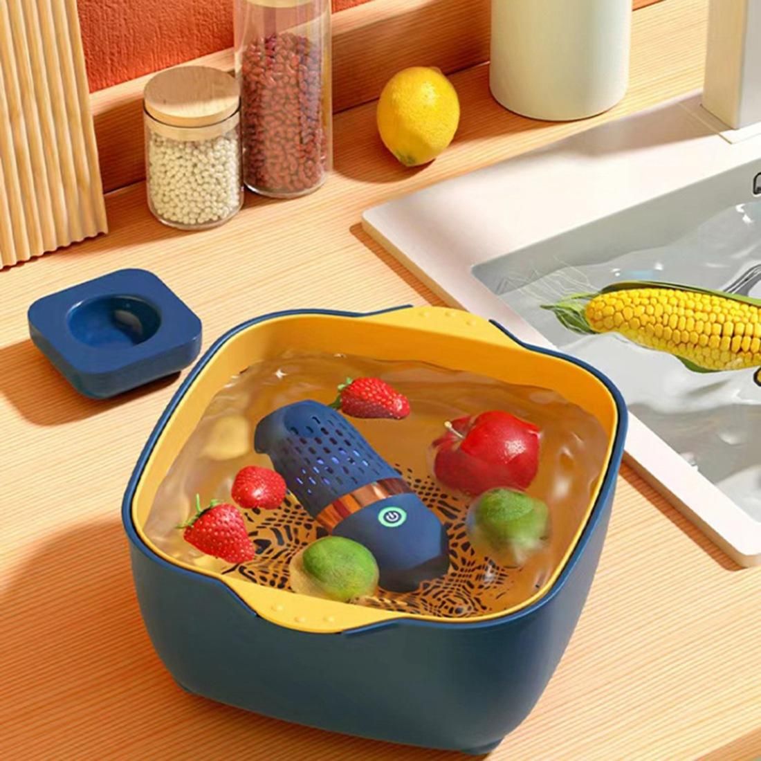 Capsule Shape Fruit Vegetable Machine Protable CleanerEasy and comfortable: place the fruits and vegetables to be cleaned, press the switch and place the device in the water to start cleaning. An easy way to clean fruits and vegetables.