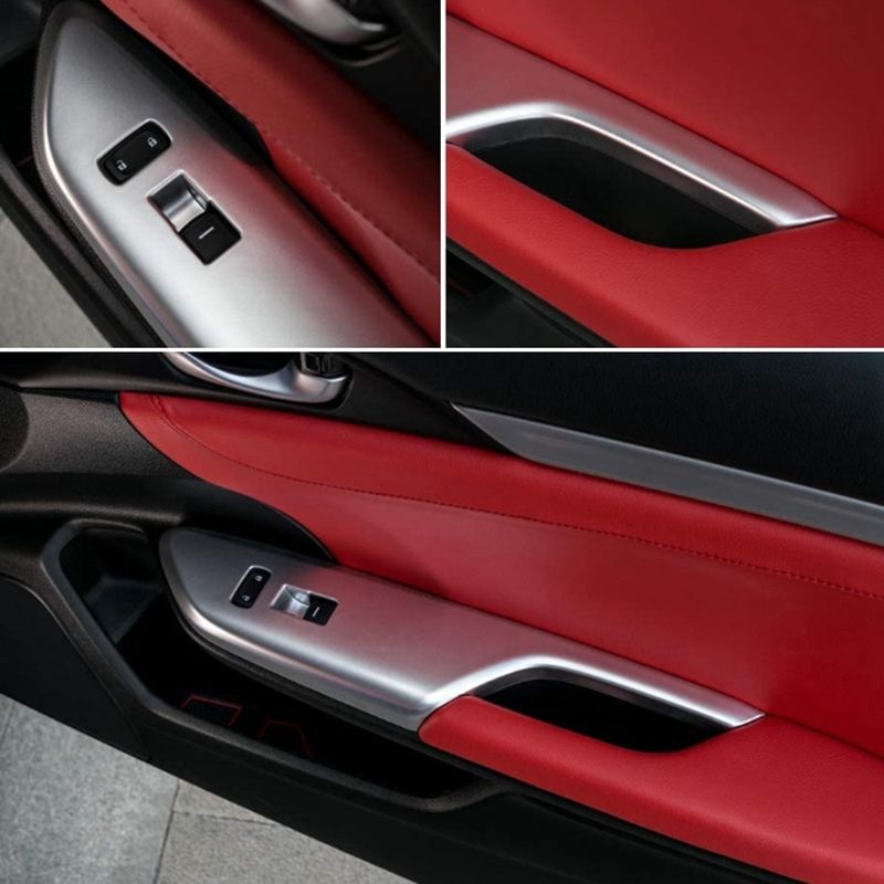 {Packaging} Each package contains 4pcs of Silver CKE Civic armrest window rise lift down control switch door lock panel cover trim for 10th Gen Civic 2020 2019 2018 2017 2016.