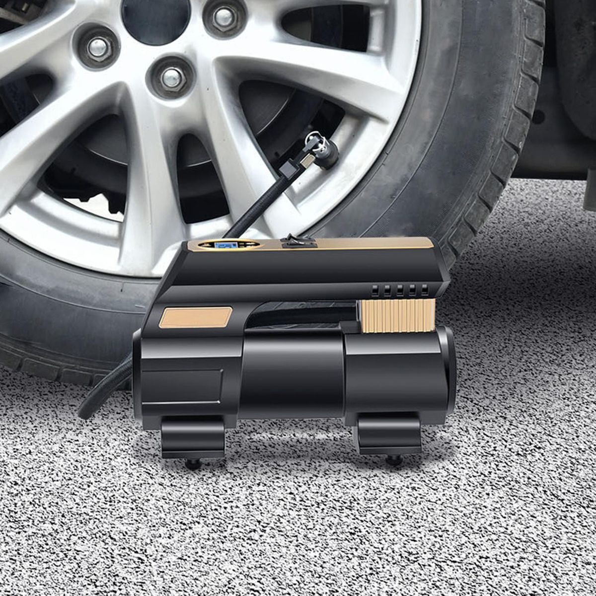 Two types to choose, mechanical / digital display. Notes: The mechanical gauge pump need to be shut down manually when the tire pressure reaches the appropriate tire pressure. When the digital display pump reaches the tire pressure, it will shut itself down. You just plugged it into then start Inflatable the car tire with ease, light and easy to carry and travel. The air pump can check tire pressure, when plugged in, press the inflation nozzle to display the tire pressure.Built in led light mode can be used in the emergency situations at night to make sure you use without any worry.Up to 3m of 12V car power cord, and the length of inflatable tube is about 60cm, more convenient to use.Suitable for a car tire, motoct tire, bike tire and balls.Copper motor, high performance, reduce energy consumption, stable metal cylinder body can heat dissipation during use and reduce noise, and quickly replenish air in 30s.