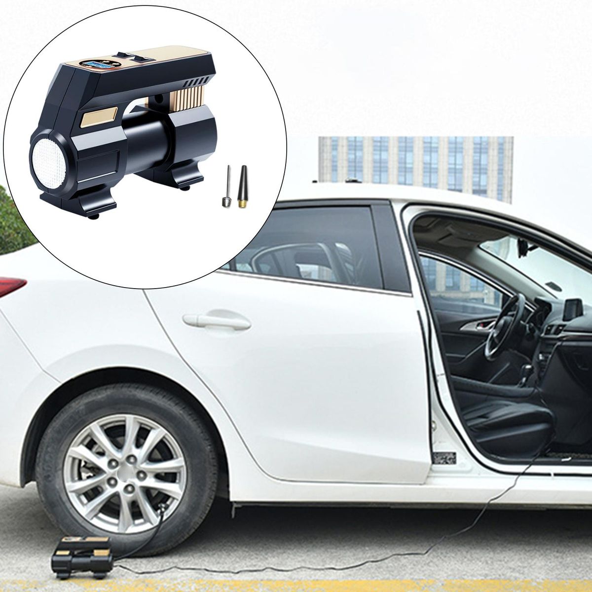 Two types to choose, mechanical / digital display. Notes: The mechanical gauge pump need to be shut down manually when the tire pressure reaches the appropriate tire pressure. When the digital display pump reaches the tire pressure, it will shut itself down. You just plugged it into then start Inflatable the car tire with ease, light and easy to carry and travel. The air pump can check tire pressure, when plugged in, press the inflation nozzle to display the tire pressure.Built in led light mode can be used in the emergency situations at night to make sure you use without any worry.Up to 3m of 12V car power cord, and the length of inflatable tube is about 60cm, more convenient to use.Suitable for a car tire, motoct tire, bike tire and balls.Copper motor, high performance, reduce energy consumption, stable metal cylinder body can heat dissipation during use and reduce noise, and quickly replenish air in 30s.