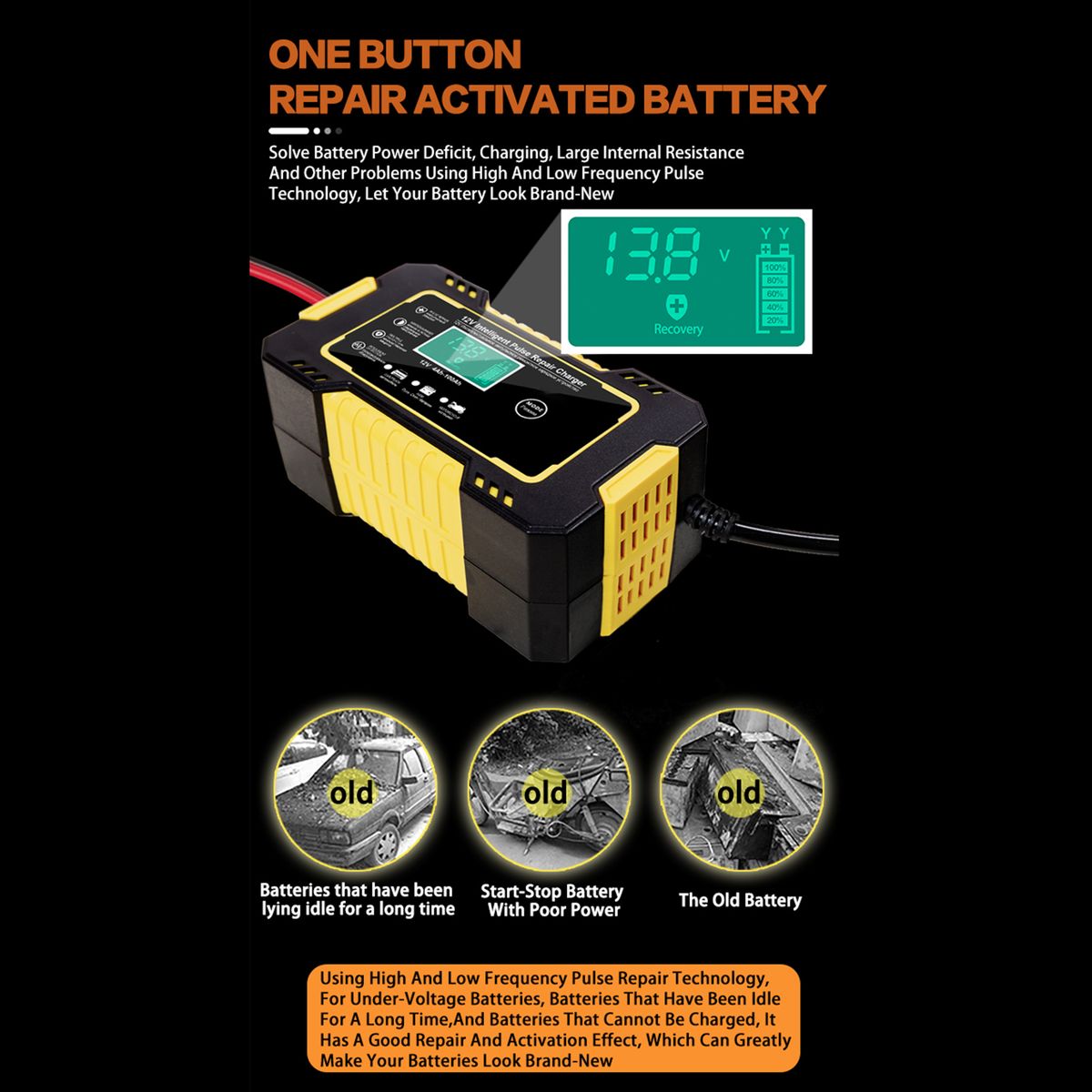 Automatic sulfa-ting and acid stratification detection, One Key to Repair, Activate Battery, Pulse repair function can help to repair your loss battery and extend battery life.