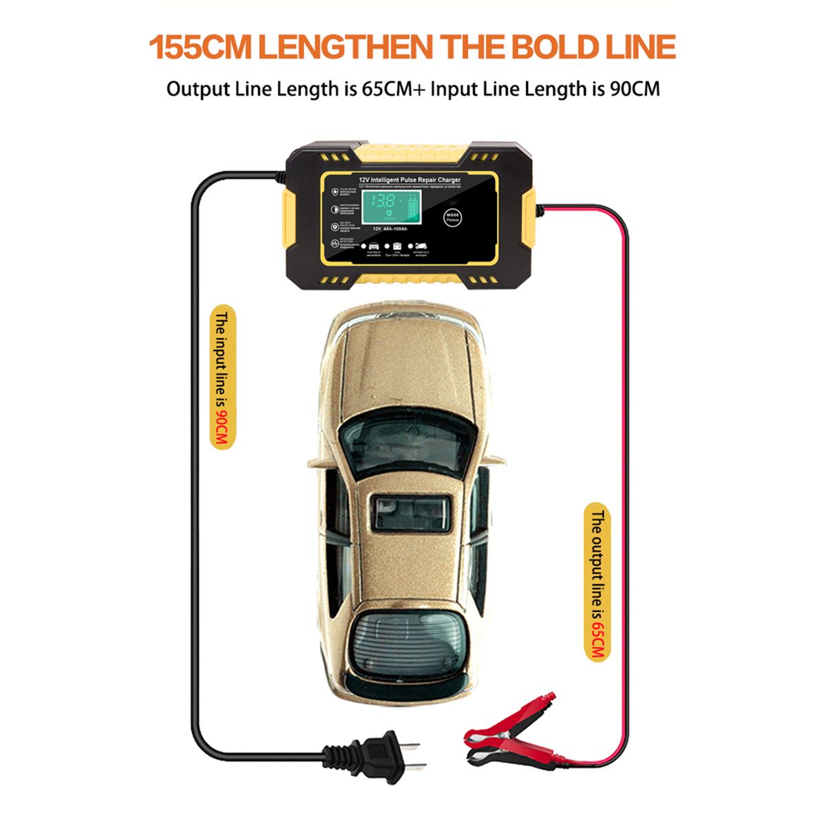 Using a backlit LCD display, the battery charger automotive clearly and visibly shows LCD screen displays status and battery status.