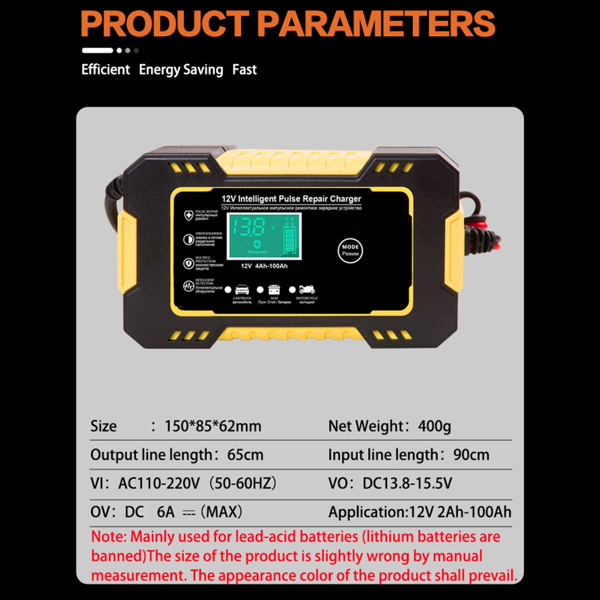 Features:Repair all 12V lead-acid automotive, marine and deep-cycle batteries including , , SLA, Flooded in cars, trucks, SUVs, motorcycles, lawn mowers, boats, etc.