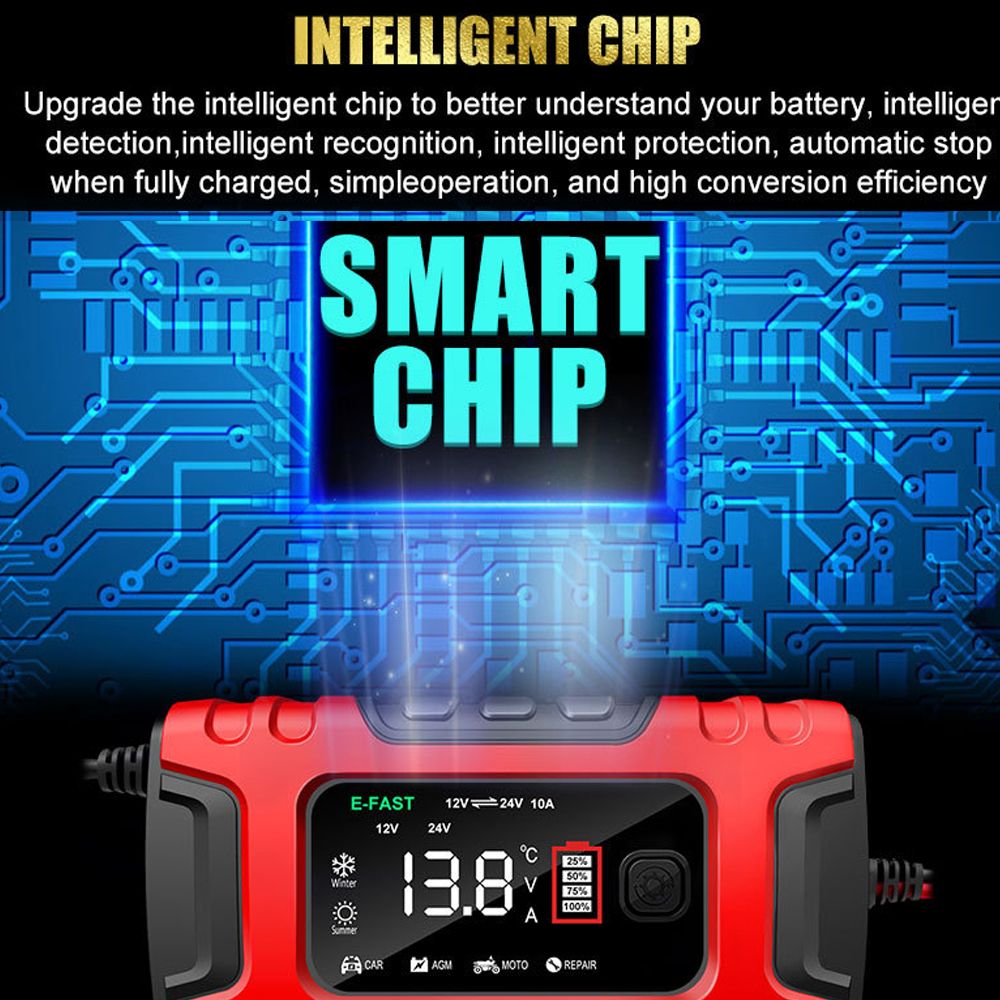 Intelligent chip, intelligent detection, intelligent recognition, intelligent protections, AutomaticStop when fully recharged, simple operation, and high conversion efficiency.