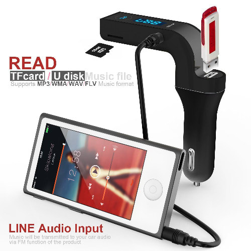 It can play and transmit the music from TF card to car stereo via FM radio signal.