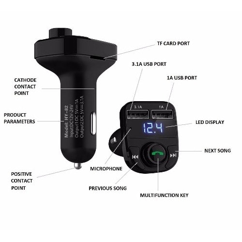Car Bluetooth Audio Player/Charger & Phone Call Hands-Free Kit