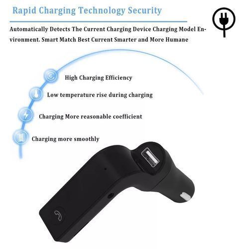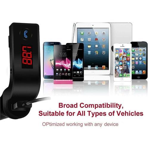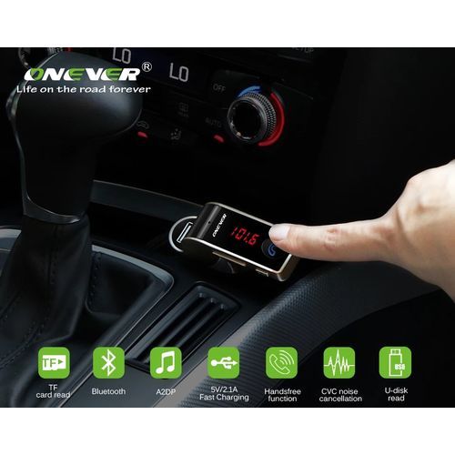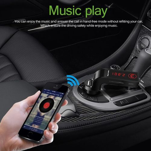 Specification: 1. Car Bluetooth FM transmitter 2. TF card to play musics 3. USB port For Charging your phone and playing music 4. 3.5mm jack Audio cable Input music port 5. Bluetooth connecting to play music 6. Freedom to switch Music playing from TF card,or U Disk or bluetooth connecting 7. Full frequency FM transmitter 8. Built-in Microphone, Answer/Reject/Hang up/Redial phone calls