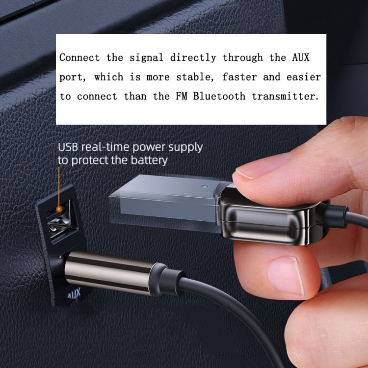 16. Connect the signal directly through the AUX port, which is more stable, faster and easier to connect than the FM Bluetooth Transmitt er.
