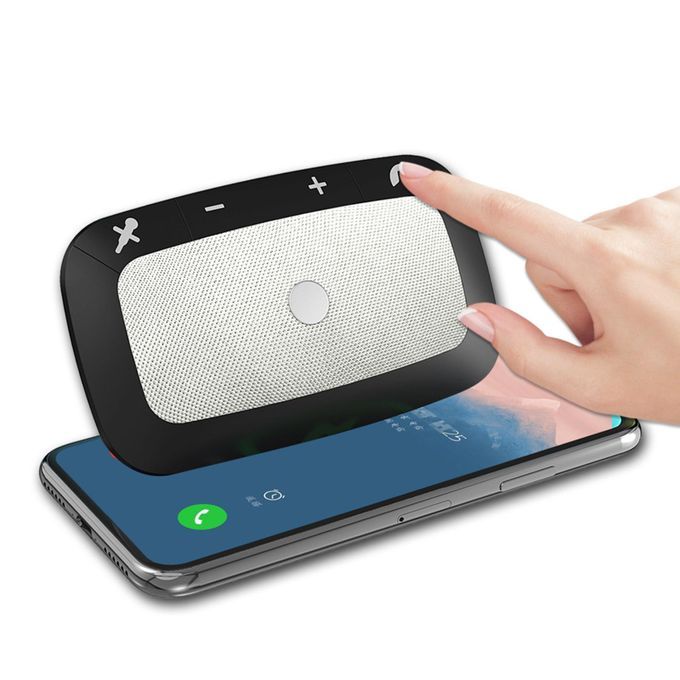 Car Speakerphone;car bluetooth speakerphone mobile accessories;wireless handsfree talking kit voice guidance;hands free cell phone kit motion auto back clip;speaker adapter visor clip google assistant loud;vehicle speakerphone music player volume knob