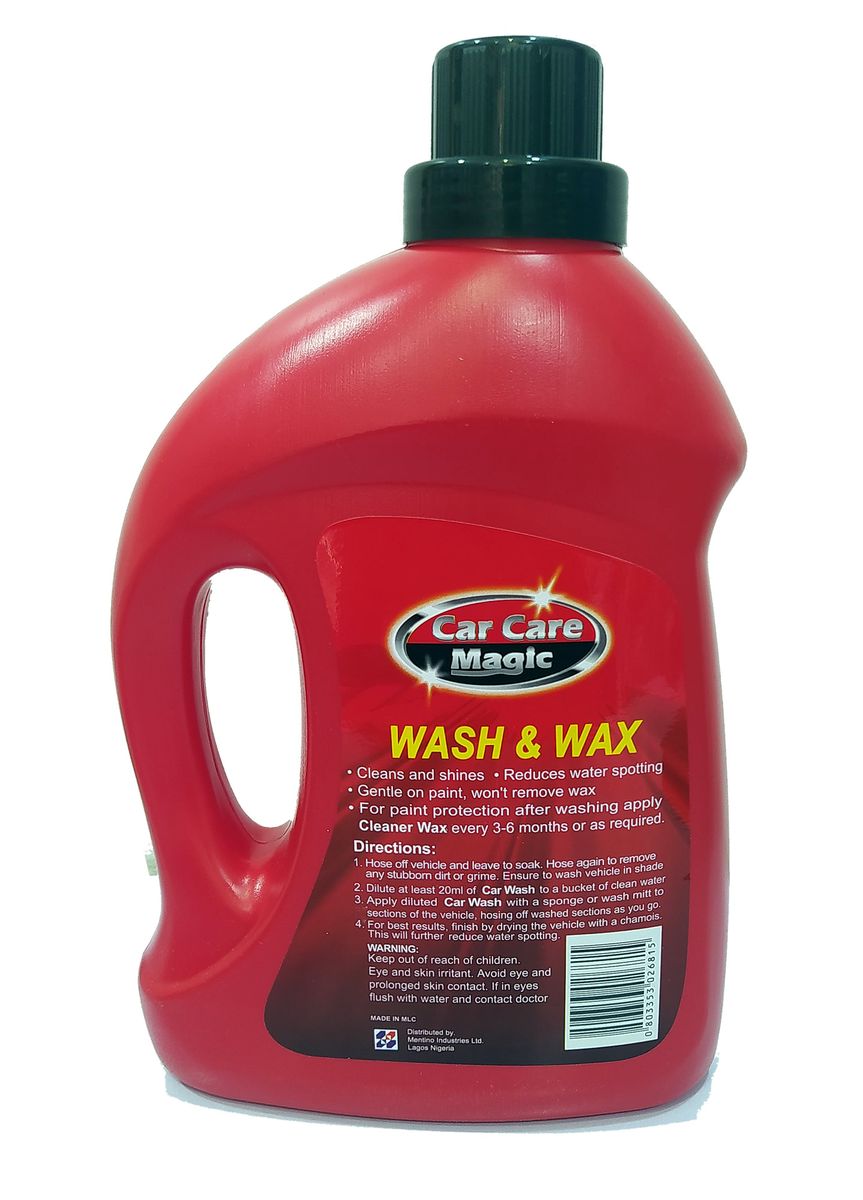 Car care Magic Wash and Wax cuts through stubborn dirt and road film. It cleans, shines and protects. It is safe for all finishes Including clear coats and contains no harsh detergents