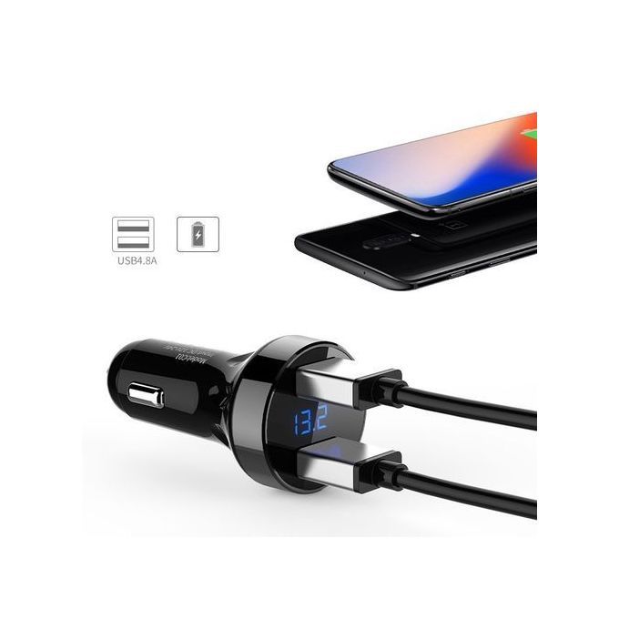 car charger digital display car charger cig-arette light er car mobile phone charger dual USB fast charging multi-functionFeatures:* Dual USB4.8A fast charge single port current up to 2.4A (* Blue digital display Battery voltage warning* 12V-24V universal intelligent cooling intelligent shunt* Smart c=hip short circuit, over voltage, over current, over temperature, overload, over charge, anti-interference* ABS fireproof material, scratch resistant Product parameters:Material: ABS fire protectionInput voltage: DC12V-24VOutput voltage: 5VOutput power: 24WOutput current: 4800MAColor: black gun colorWorking temperature: 0 ° C ~ 40 ° CWeight: 0.05kgSize: 67.5x34x34mm