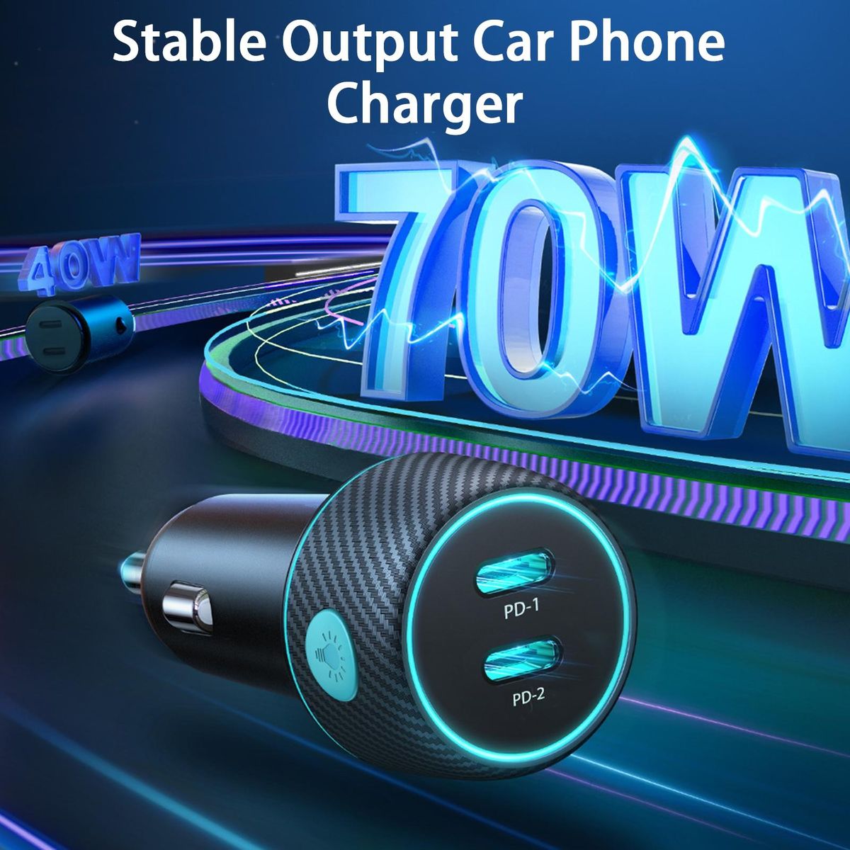 It is convenient for you to use this product for the dual USB interfaces, 70W high power output, QC3.0 fast charging, and the colorful ambient light.