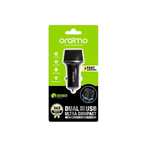 Energy empire The whole store sells Oraimo brand products.Oraimo mainly sells electronic products and digital accessories, including headets, smart watches, power banks, car chargers, speakers and other products.Please follow our store, we will continue to update the latest products, please look forward to it!Connector: Dual USB Input: 12-24V Output: DC 5V/2.1A MaxCable Output: 5V/2A MaxPlug Type: Lightning & Micro USBLength: 1.2moraimo Highway LED Light Dual USB Fast Charging Car Charger with Multi-Protection System