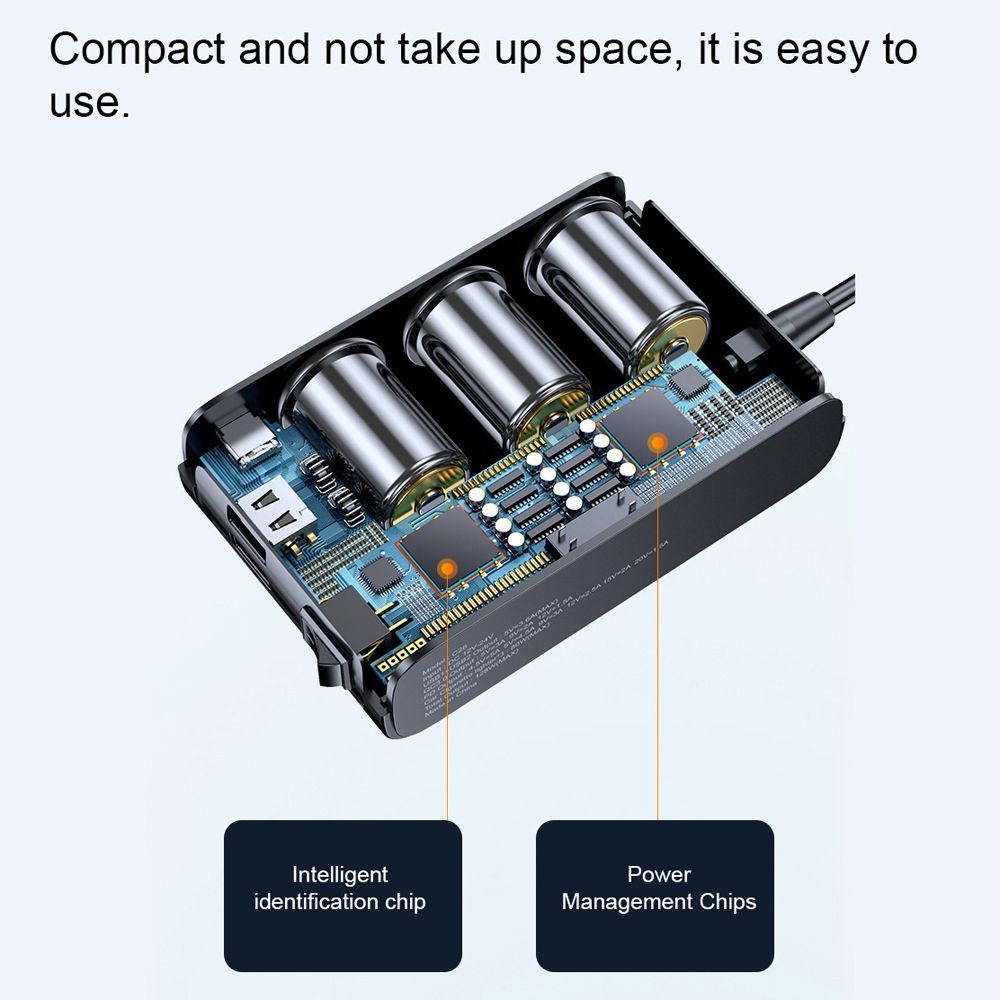 4 USB Port: Equipped with 4 USB ports, PD30W+QC3.0 quick charging, to meet the needs of multiple people, and can provide power for phones, tablets, earphones, fans, dash cameras, etc.