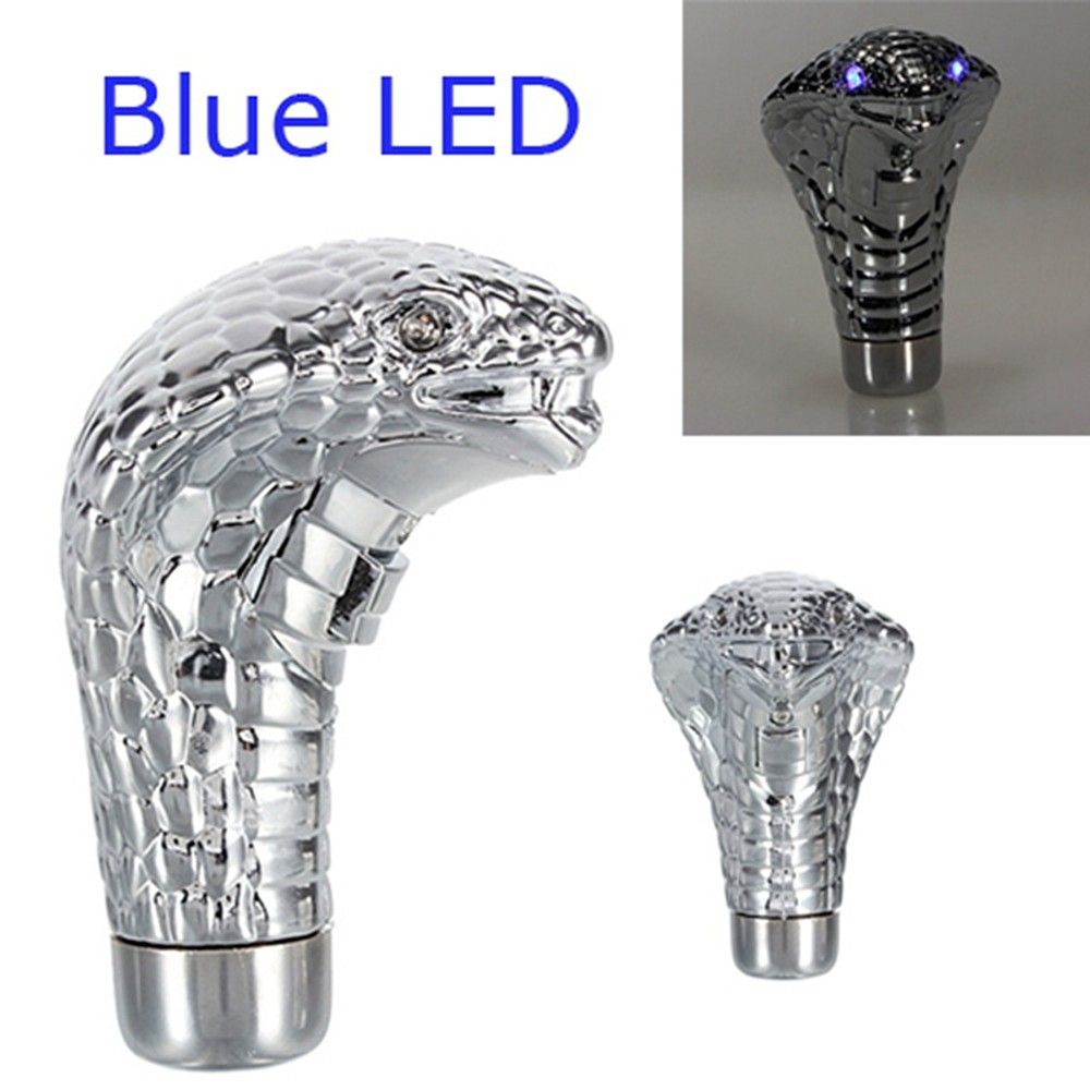 Do you want to decorate your old traditional gear shift rod? If so, here we have a unique and chic gear shift knob, designed in cobra snake shape. It features its human ergonomic design and hand sized characteristic. More interestingly, it emits two blue LED lights. No more waiting to make your car cooler.