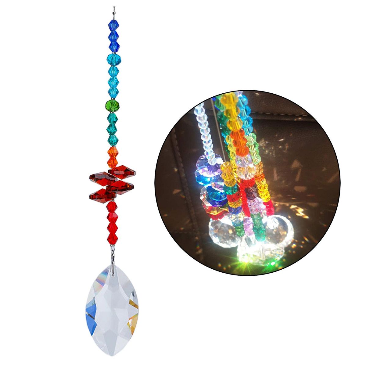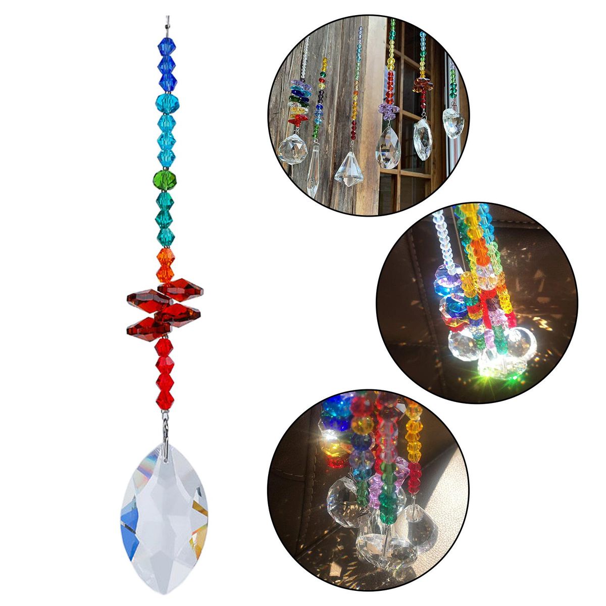 Material: Crystal, beautiful and sparkling, work well catchers, splatter the sunshine into lt;gt;Decoration for Home Office Garden Window and Car; amp;#39; rainbows for special day.