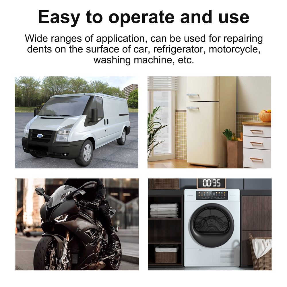 Easy to operate and use, wide ranges of application, can be used for repairing dents on the surface of car, refrigerator, motorcycle, washing machine, etc.