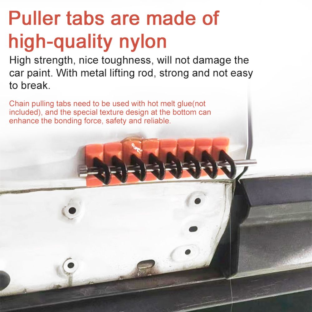 Puller tabs are made of high-quality nylon, high strength, nice toughness, will not damage the car paint. With metal lifting rod, strong and not easy to break.