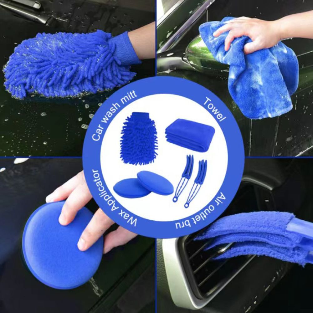 5 x Car Detail Brushes,1 x Wash Mitt,4 x Drill Brushes,2 x Drill Polishing Pads,1 x Suction Cup,1 x Car Vent Brush,2 x Towels,