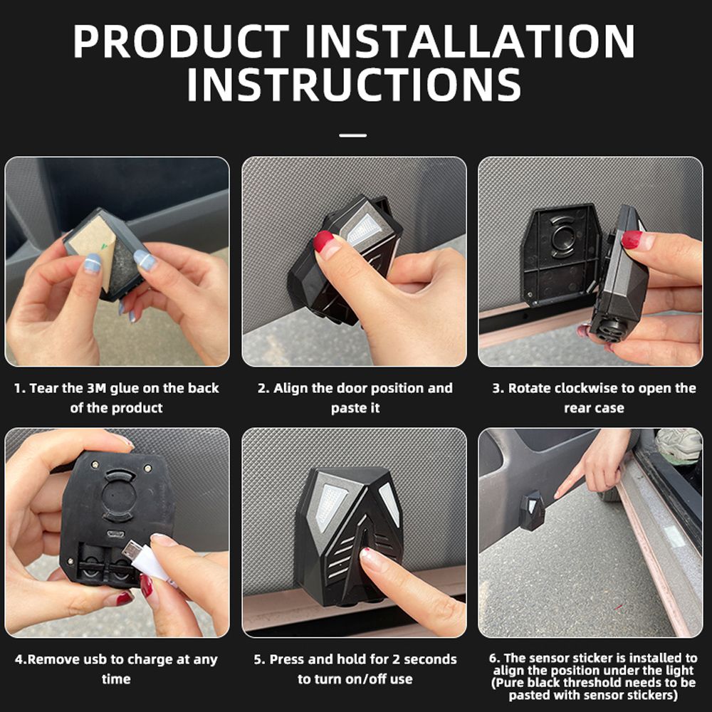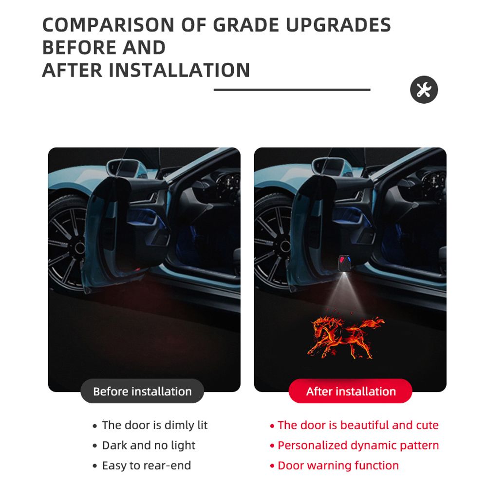 Item Description 1.The projection lamp is USB charging and can be disaembled. 2.The projection is two patterns to move back and forth. 3.There are 1 gear, 2 gears and 3 gears. The frequency of projection jumping can be adjusted, 1 gear monochrome, 2 gears slow beating, 2 gears fast beating Aabout Item 1. Dynamic Welcome Light,. 2. Anti collision Warning Light. (Red and Blue Strobe) 3. Infrared Induction. (LED Automatically Turn on at night/ turn off during the day) 4. Obstacle Sensing. If there is 4-10cm distance away from projector lens, the device will turn off. Make it more convenient , when you open the door, the device will turn on, and it will turn off when you close the door. Other Information 1.Built-in battery: 500mah 2. USB Charging. 3. Patterns Replaceable (welcome customs, car logos available)