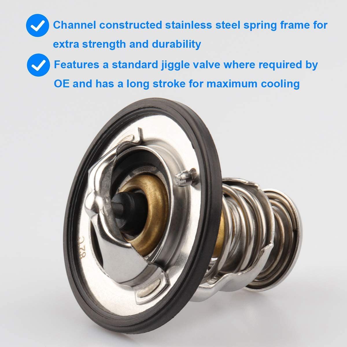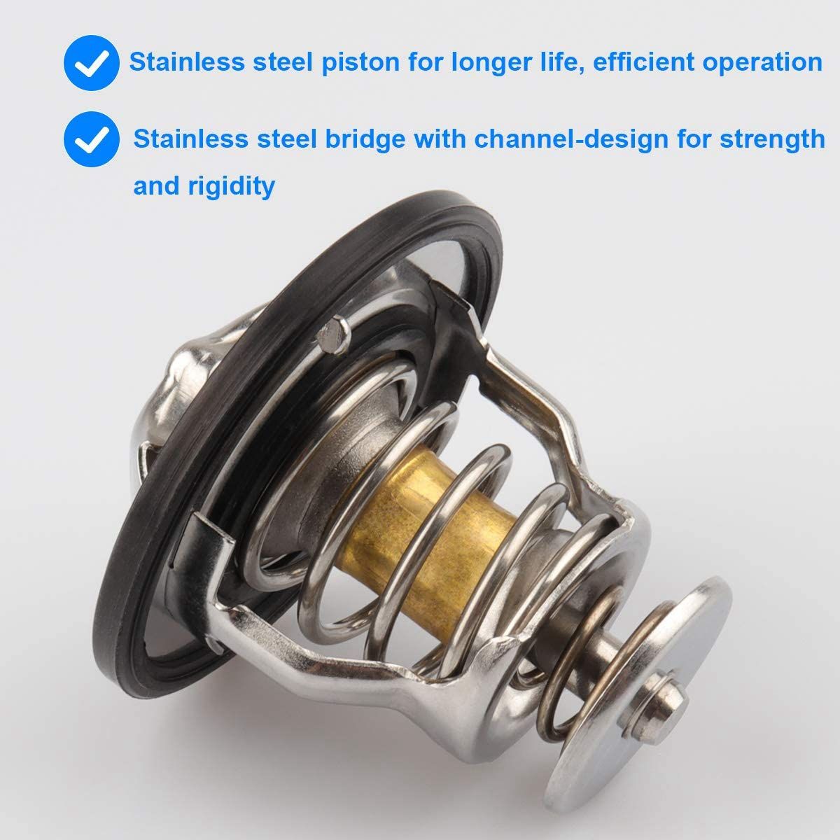 Function: professional, high-quality style, meet or exceed the performance of all old equipment replacement thermostats. Made of high-quality materials, durable. The high quality design can fit the thermostat properly and fix the thermostat in the outlet casting, so as to obtain better performance. Slot structure stainless steel spring frame, increase strength and durability.