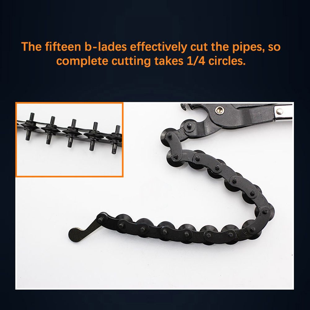 The fifteen b-lades effectively cut the pipes, so complete cutting takes 1/4 circles.
