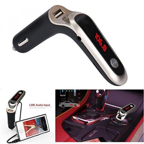 Read and play music files from USB flash drive;Stream audio to car stereo system wirelessly;Inbuilt mic and BT allow for convenient handsfree calls;Automatically return to music play after the call ends;LCD screen displays current frequency;Power-off memory function,save the current frequency;Built with Play & Pause, Previous & Next buttons Powered by car cigarette lighter, easy to use;Offer 2 USB ports for cellphone charging and 1USB port for music;Beautiful compact design complements your car.