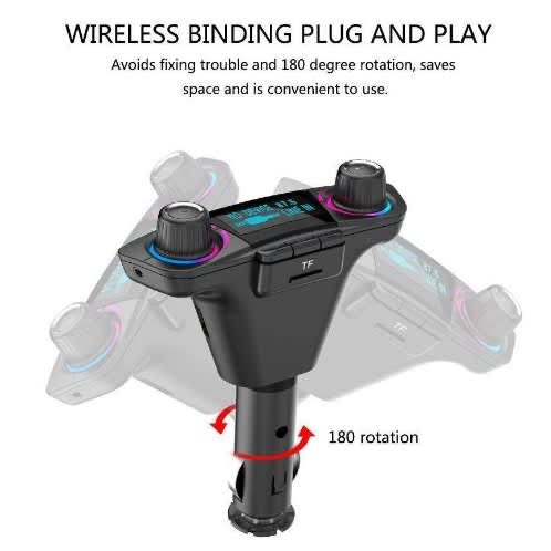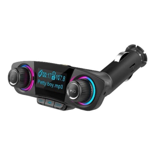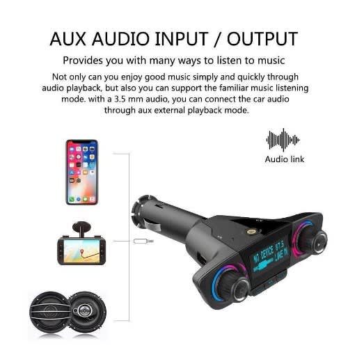 Read and play music files from USB flash drive;Stream audio to car stereo system wirelessly;Inbuilt mic and BT allow for convenient handsfree calls;Automatically return to music play after the call ends;LCD screen displays current frequency;Power-off memory function,save the current frequency;Built with Play & Pause, Previous & Next buttons Powered by car cigarette lighter, easy to use;Offer 2 USB ports for cellphone charging and 1USB port for music;Beautiful compact design complements your car.
