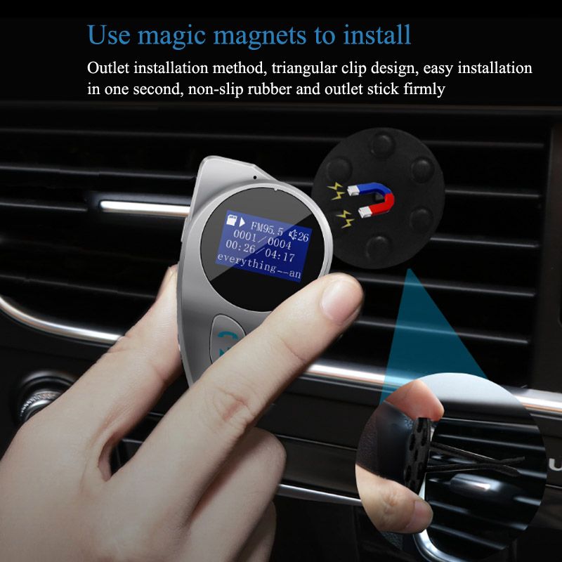 This device transmits signal by wireless method, no need to modify anything in car. It can be used both as the music player in entertainment purpose or hands-free car kit in safety purpose during driving.